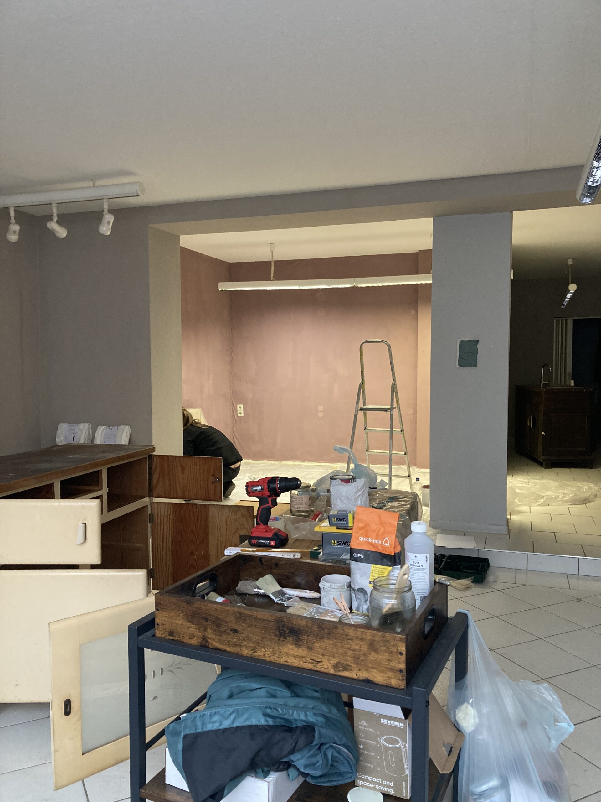 Unser erstes Treffen fand bereits auf der Baustelle statt. Gerade machen wir es uns so richtig schön im neuen Raum!